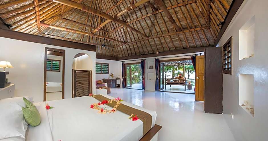 Located directly on the beach, this open-plan bure features an open ceiling and a traditional thatched roof. French Doors that open out to your own extended thatched deck. You can enjoy the views of the lagoon, watch the day go by from your own beach hammock or day bed or catch abit of sun on your beach sun loungers.